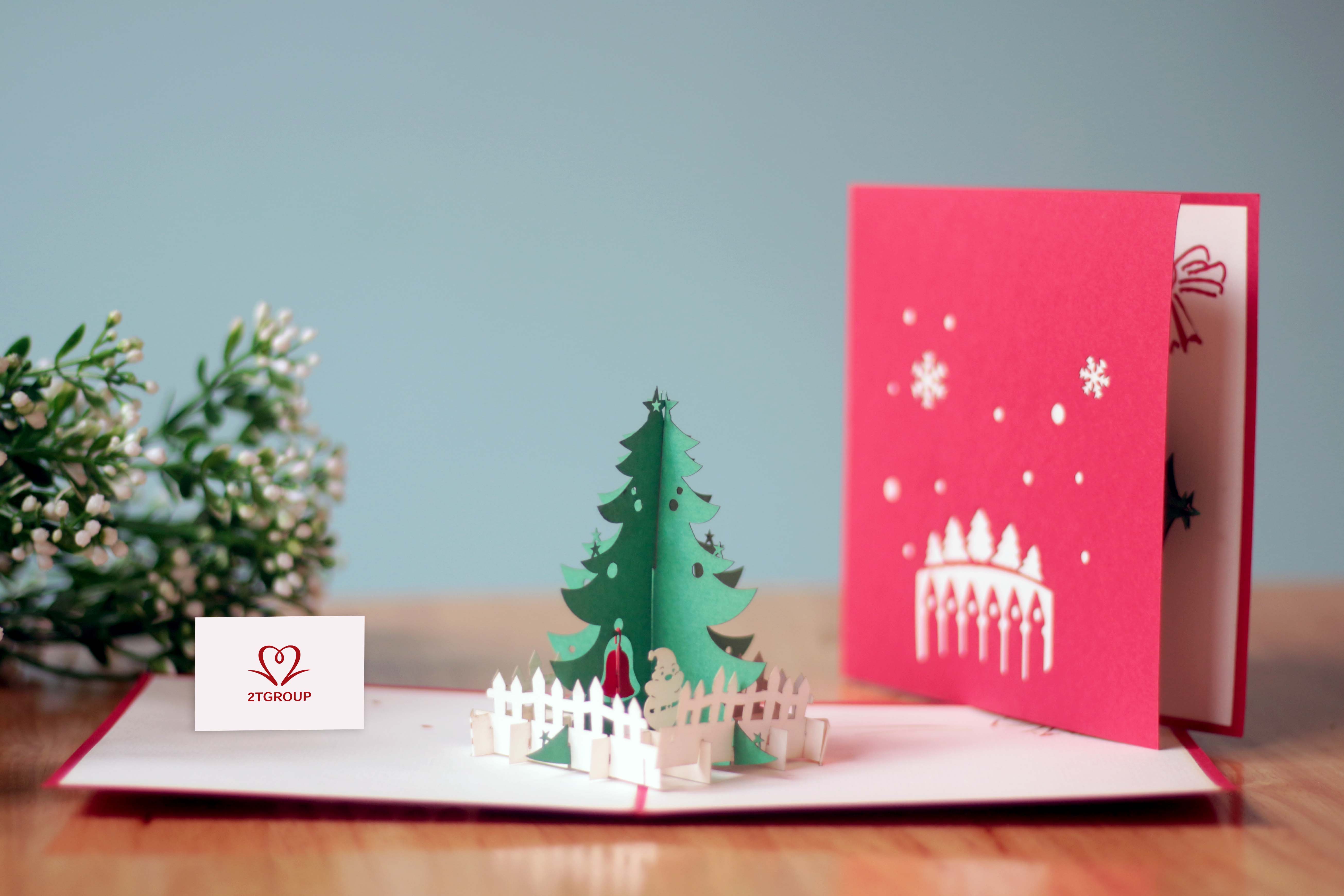 C3D26 - THIỆP 3D CÂY THÔNG CHUÔNG ĐỎ